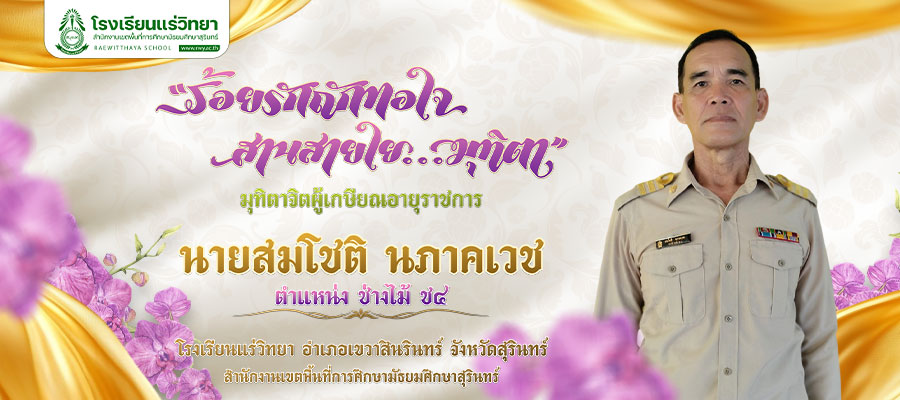 นายสมโชติ นภาคเวช ตำแหน่ง ช่างไม้ ช4 เริ่มรับราชการในตำแหน่งนักการภารโรง โรงเรียนแร่วิทยา ต.บ้านแร่ อ.เขวาสินรินทร์ จ.สุรินทร์ เมื่อวันที่ 8 ธันวาคม 2540 วันที่ 2 ตุลาคม 2549 เปลี่ยนตำแหน่งเป็น พนักงานบริการ วันที่ 1 เมษายน 2552 เปลี่ยนตำแหน่งเป็น ช่างไม้ ชั้น 1 วันที่ 1 เมษายน 2553 เลื่อนตำแหน่งเป็น ช่างไม้ ชั้น 2 ต่อมา วันที่ 4 สิงหาคม 2554 เลื่อนตำแหน่งเป็น ช่างไม้ ชั้น 3 ปัจจุบันดำรงตำแหน่งเป็น ช่างไม้ ชั้น 4