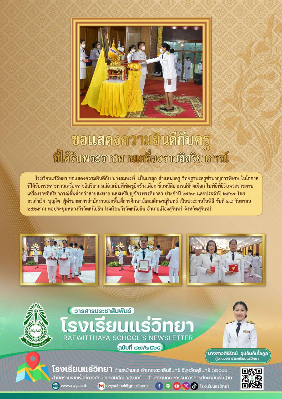 ยินดีกับครูที่ได้รับเครื่องราชอสริยาภรณ์