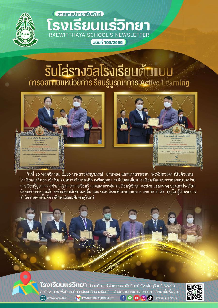 รับโล่รางวัล รร.ต้นแบบบูรณาการแผนฯ Active Learning