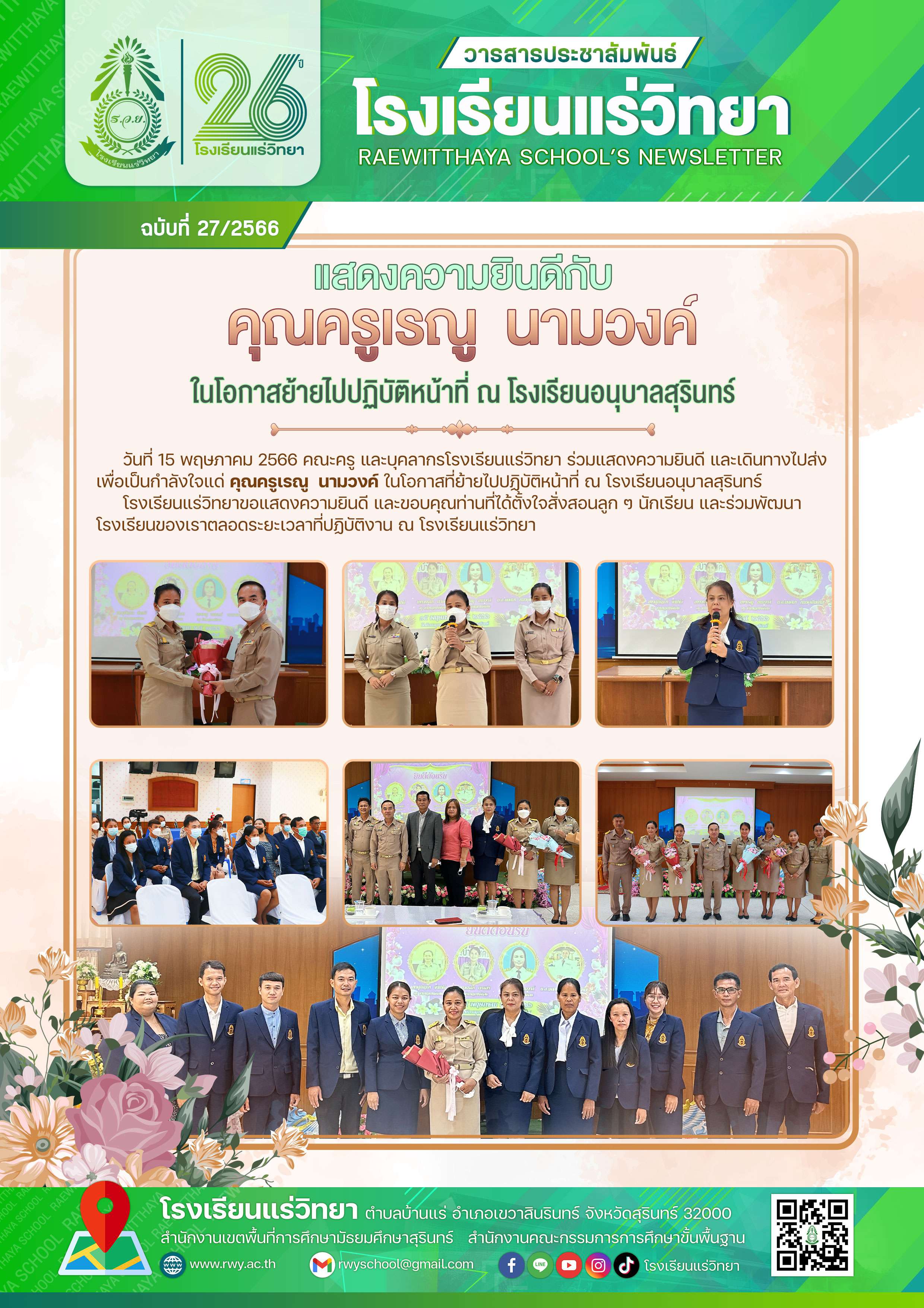 ยินดีกับ ครูเรณู ย้าย รร.