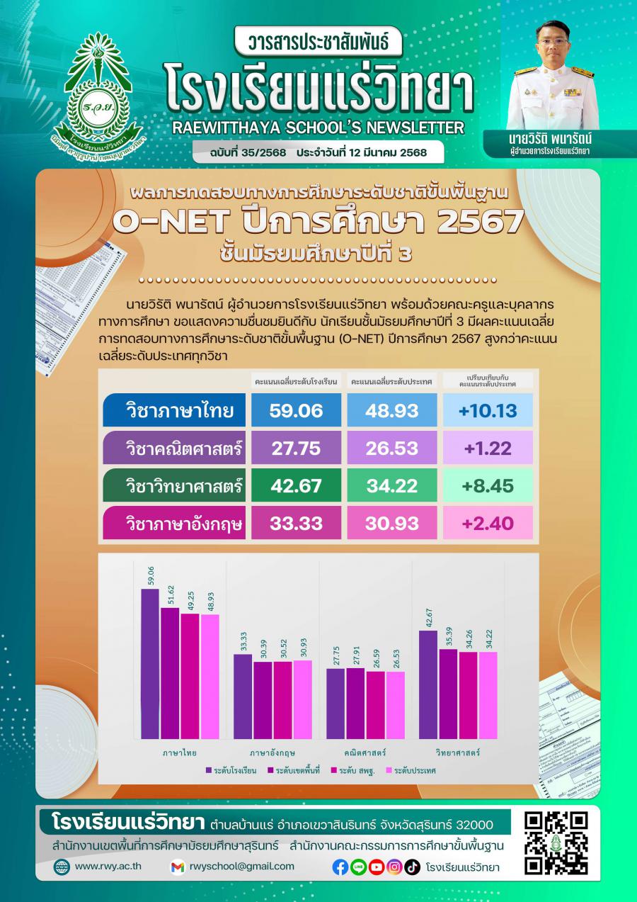 ผลการสอบ O-NET ม.3