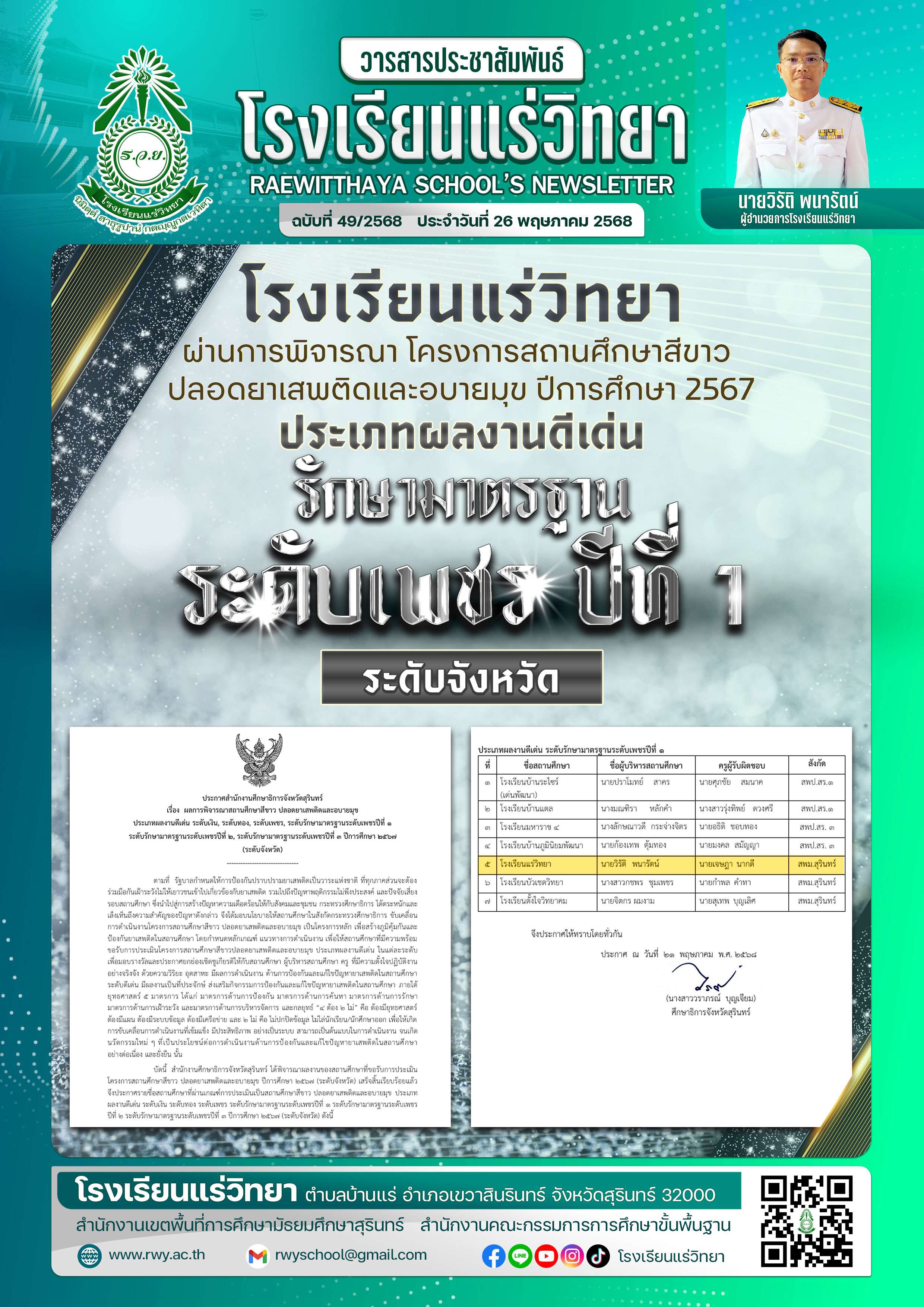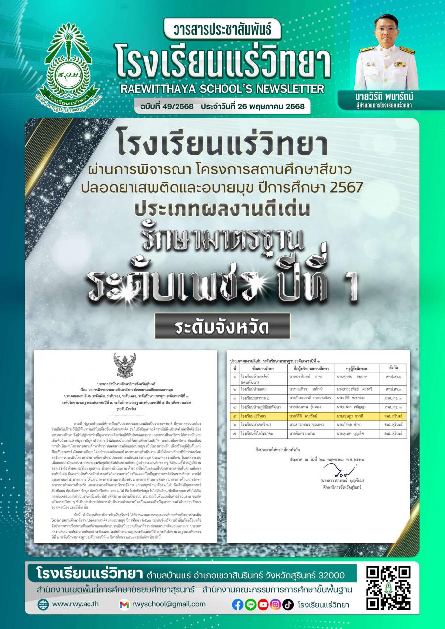 รางวัลสถานศึกษาสีขาว ระดับเพชร ปีที่ 1 ระดับจังหวัด