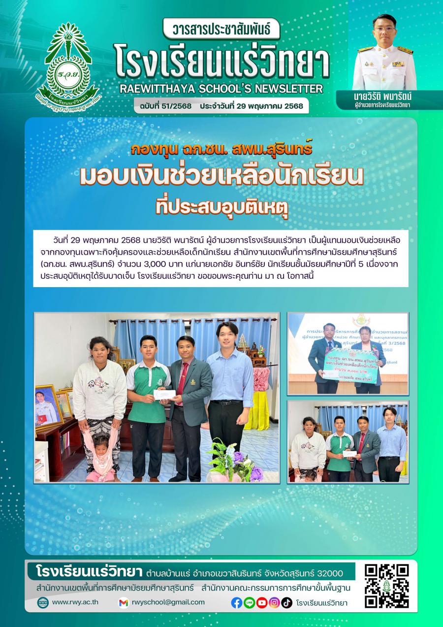 กองทุน ฉก.ชน. สพม.สุรินทร์ มอบเงินช่วยเหลือ