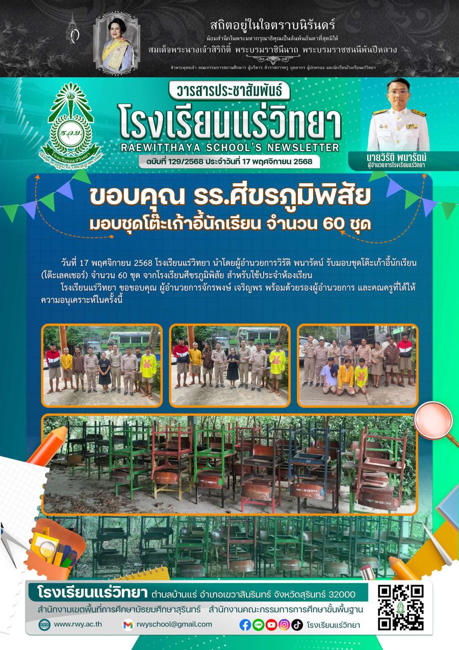 รร.ศีขรภูมิฯ มอบชุดโต๊ะเก้าอี้นักเรียน