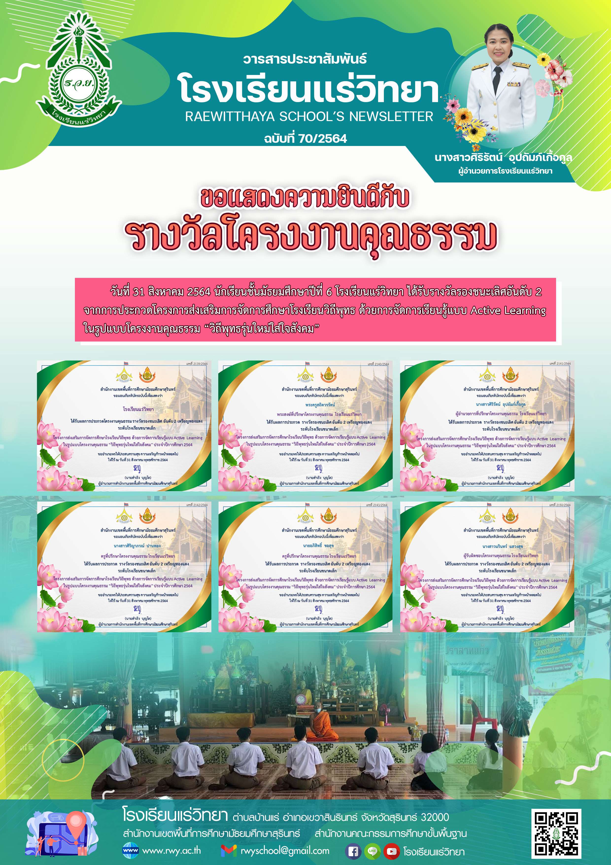 ยินดีกับรางวัลโครงงานคุณธรรม