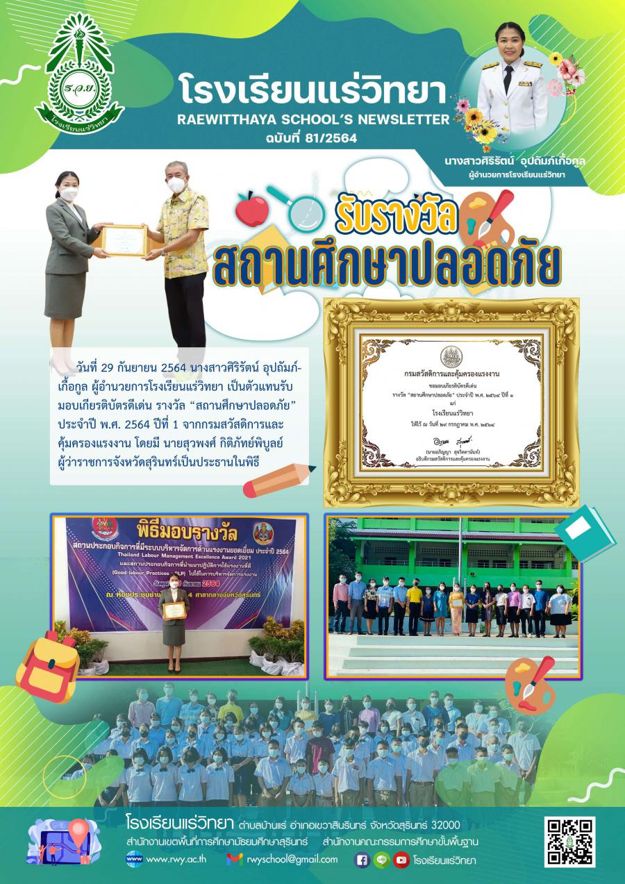 รับรางวัลสถานศึกษาปลอดภัย 2564