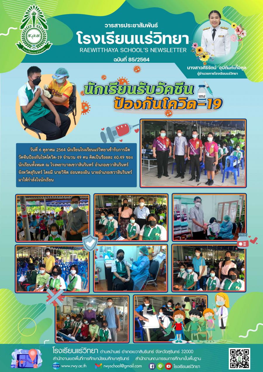 นักเรียนรับวัคซีนป้องกันโควิด 19 เข็มที่ 1