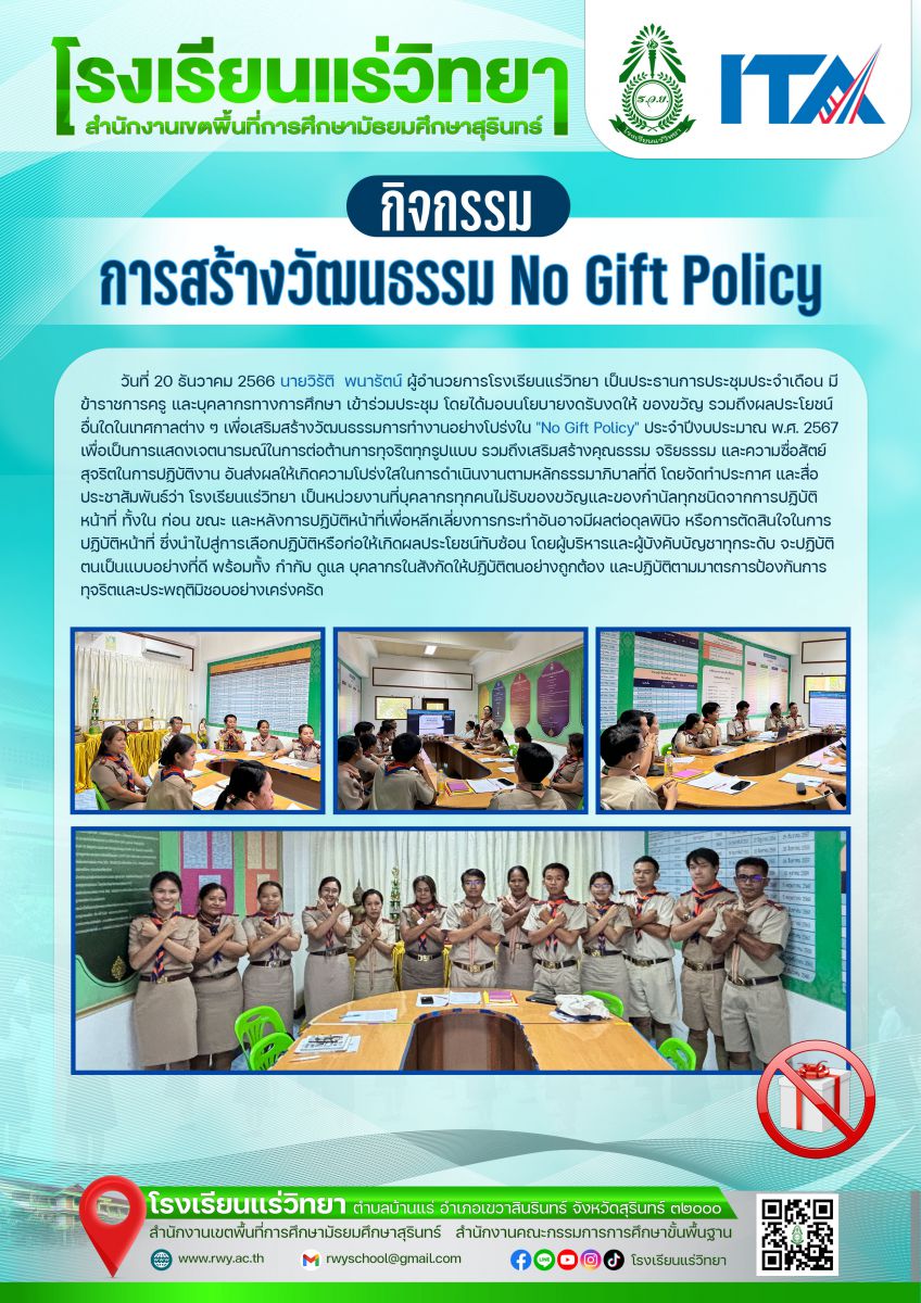 ประกาศเจตนารมณ์นโยบาย No Gift Policy จากการปฏิบิติหน้าที่